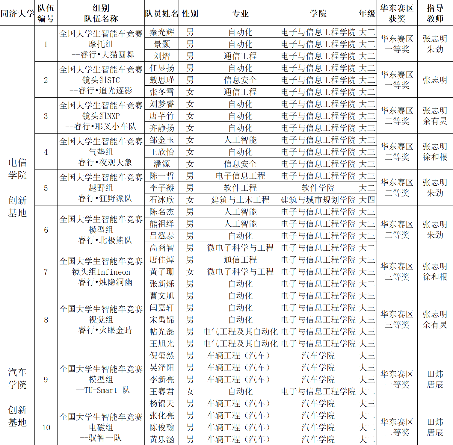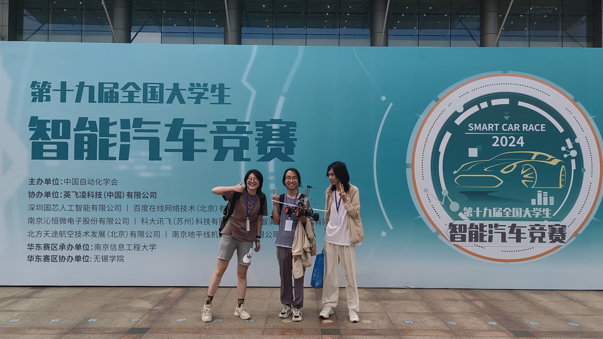 智能车竞赛实验室由太阳成官网控制科学与工程系张志明老师负责,经过近一年的招新、培训和实践等历程,由张志明、朱劲、余有灵、徐和根等教师指导,老队员刘梦晓、周庚栋、杨思远等参与辅助管理,参加校赛并获得气垫组、摩托组、视觉组、模型组、镜头组(STC/INF/NXP)等五个室内组别和越野信标组一个室外组别的晋级参赛资格。来自3个学院9个专业的27名本科生同学组成8支队伍,由张志明和朱劲两位老师带队,赴南京信息工程大学参加智能车竞赛华东赛区,学生秦光辉(自动化)、景颢(自动化)、刘熠(通信工程)组成的“睿行•大猫圆舞”队获得摩托组一等奖,任昱扬(自动化)、敖思瑾(信息安全)、张冬雪(通信工程)组成的“睿行•追光逐影”队获得镜头STC组一等奖,镜头NXP组、气垫组、越野组和模型组获得二等奖,镜头Infineon组和视觉组获得三等奖。此外,王赛君(自动化)参加汽车学院队伍获得模型组一等奖。