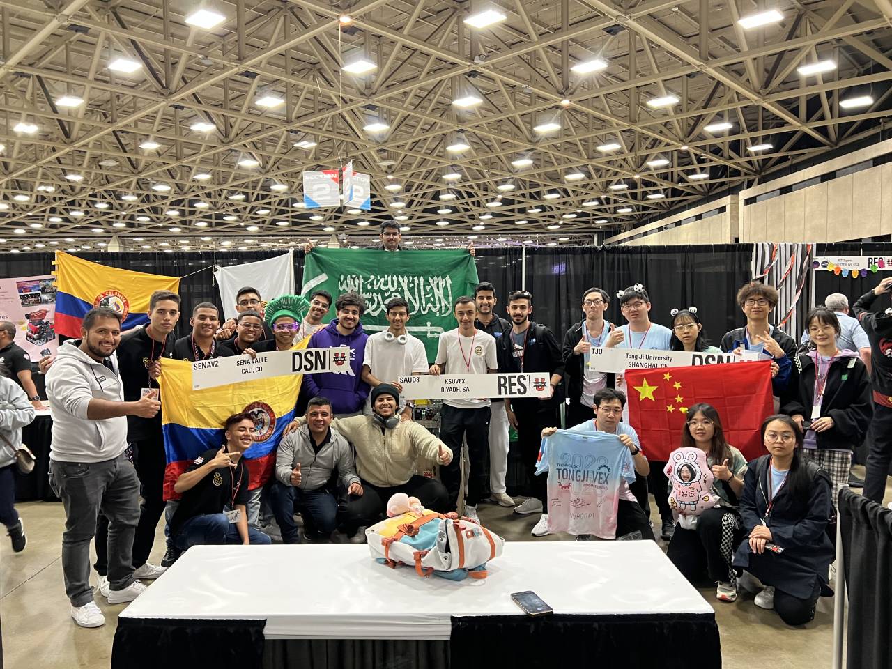 我校参赛队与普渡大学参赛队合影 我校参赛队与国外其他高校参赛队合影