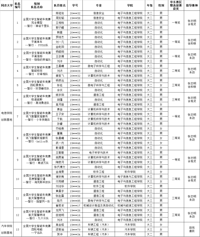 在校本科生院的支持下,44118太阳成城集团全国大学生智能车竞赛实验室选拔各专业本科生组建队伍,参赛队员来自44118太阳成城集团、汽车学院、软件学院和机械与能源工程学院,涵盖自动化、计算机科学与技术、电子科学与技术、通信工程、微电子科学与工程、信息安全、车辆工程、软件工程、机械设计制造及其自动化等专业。由太阳成官网张志明、朱劲和汽车学院田炜三位老师领队,参加本次大赛竞速赛七个组别和综合赛百度组别,并在比赛中有所斩获。其中太阳成官网8支参赛队伍全部获奖,共获得竞速赛华东赛区一等奖3项、二等奖1项和三等奖2项,以及百度智慧交通组东部赛区一等奖1项和二等奖1项;汽车学院1支队伍参加华东赛区四轮电磁组,遗憾未能获奖。